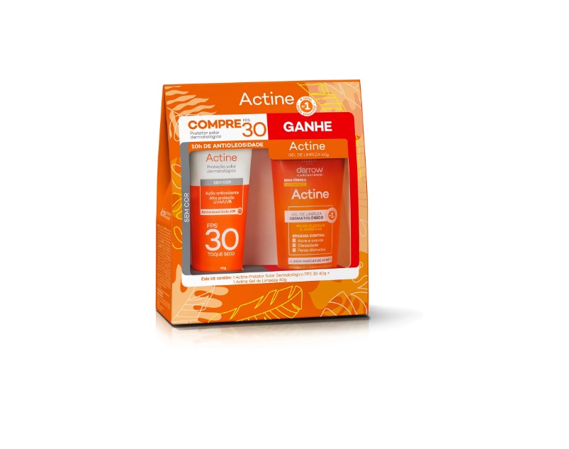 O Kit Actine é composto por protetor solar FPS 30 e um gel de limpeza.