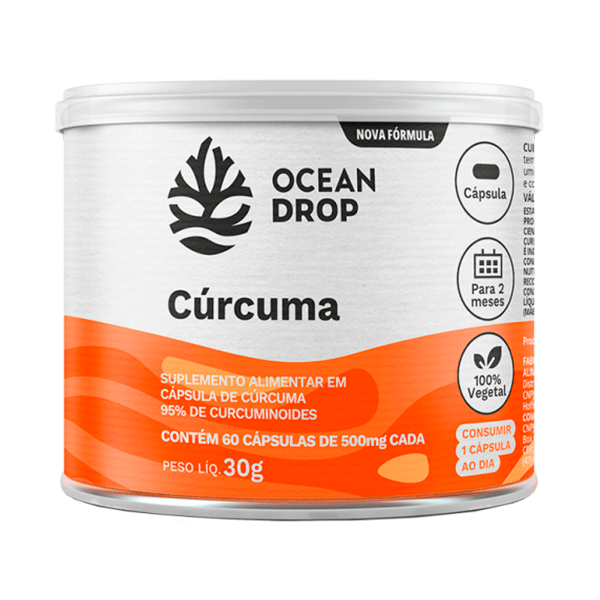 A cúrcuma é uma raiz conhecida milenarmente, sendo hoje uma das plantas mais pesquisadas da história, com mais de 13 mil estudos científicos associados aos seus benefícios. A cúrcuma da Ocean Drop vem em cápsulas e possui formulação com extrato padronizado em 95% de curcuminoides. Ainda conta com Óleo de Linhaça para uma melhor absorção dos compostos bioativos, incluindo a curcumina.