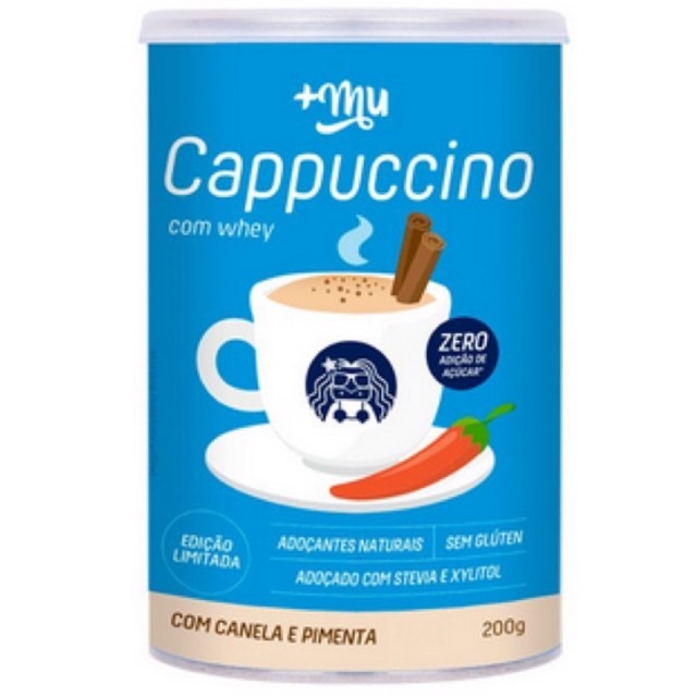 Cappuccino +Mu (com Whey, Canela e Pimenta) - 200gQuer um bom motivo pra ser feliz logo de manhã? Então, vem provar o Cappuccino com whey, canela e pimenta da +Mu! ????????????Ele tem zero adição de açúcares, não tem glúten e leva apenas adoçantes naturais, como Stevia e Xilitol.Ahhh! E como o nosso Cappuccino +Mu leva proteína, ele também está prontíssimo pra matar a sua fome durante a tarde e evitar que você meta o pé na jaca na próxima refeição! =)SE LIGA NOS BENEFÍCIOS DO CAPPUCCINO COM WHEY DA +MU:O Cappuccino com Whey da +Mu conta com ingredientes selecionados para reforçar seu lanchinho da tarde e dar um up no seu dia! Quer saber porque? Vamos lá!A canela, o café e a pimenta ajudam a acelerar o metabolismo e a proteína é o que vai ajudar a matar aquela fominha por mais tempo! Por isso, ele também evita que a gente saia comendo tudo o que vê pela frente na hora da janta! =)
