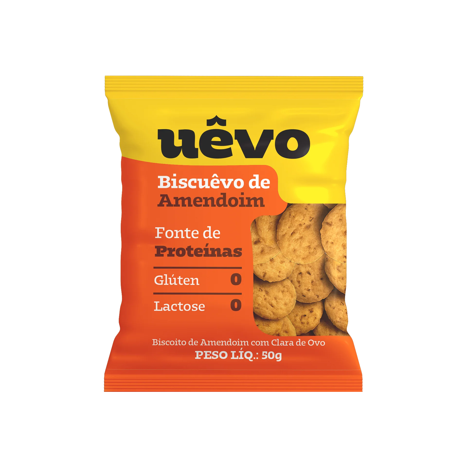 O Biscuêvo sabor amendoim é o lanche ideal para quem busca praticidade com sabor e equilíbrio. Fonte de proteínas, sem glúten e sem lactose, é crocante na medida certa e cabe em qualquer momento do seu dia.